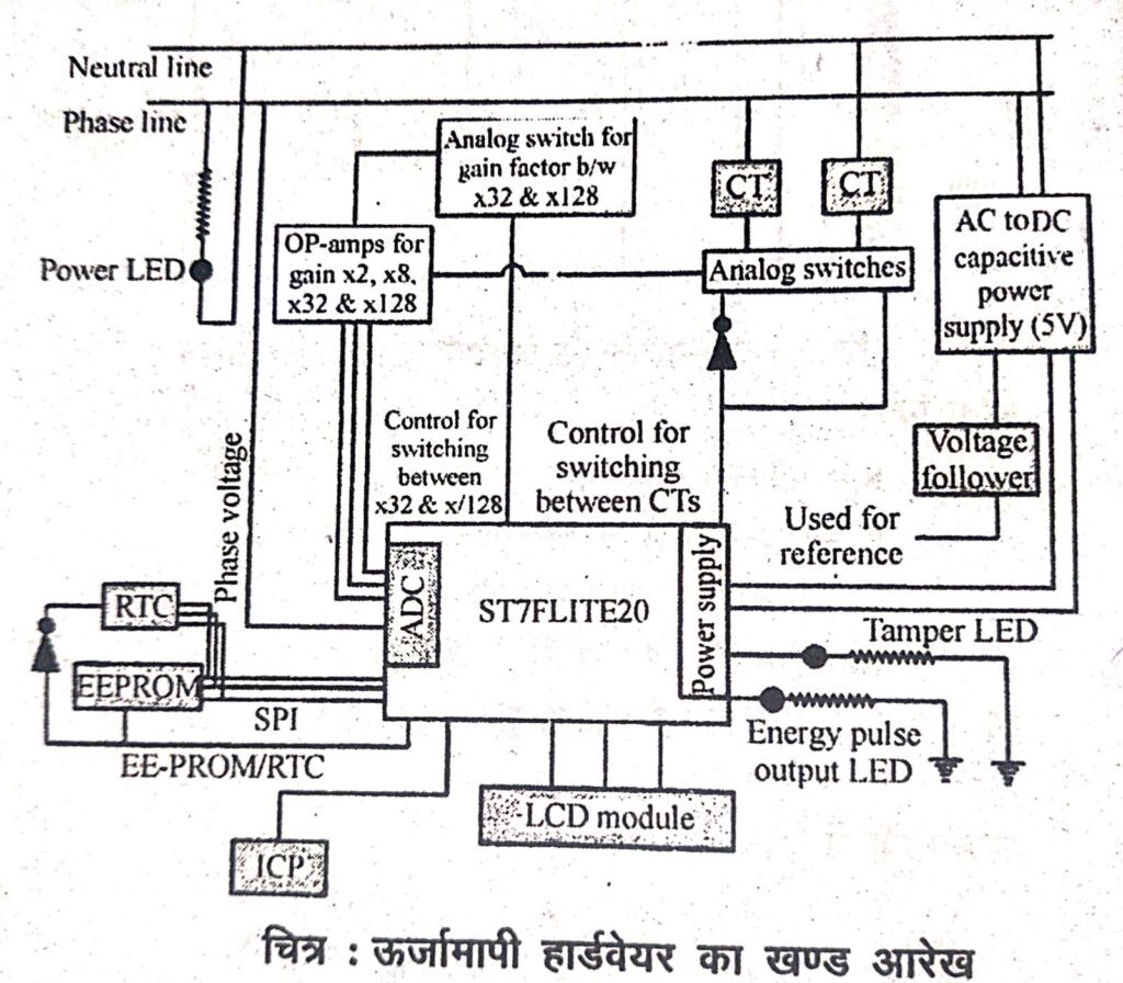 स्थैतिक (Static) ऊर्जामापी के परिपथ में निम्न मुख्य खण्ड (Block) दर्शाए गए हैं-