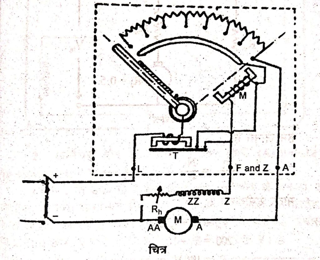 एक दिष्टधारा शंट मोटर के प्रचालन हेतु प्रयुक्त तीन बिन्दु प्रवर्तक का आरेख बनाकर कार्यप्रणाली को समझाइए?